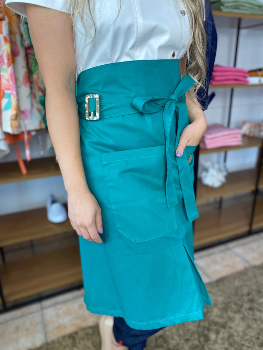 Com sua amarração frontal, este avental proporciona segurança ao vestir. Você pode ajustá-lo conforme sua preferência, garantindo que ele permaneça no lugar durante todo o expediente.